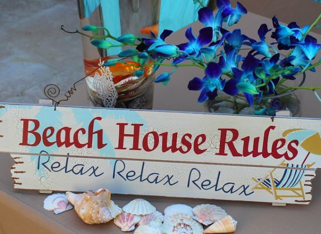 Natural elements such as coral, seashells, sand and bright colors bring the entire laid-back vibe together.  Bright tropical floral touches create such a sunny and exotic appeal without being too stuffy. or formal. Vintage Hawaiian print linens add just the perfect amount of Aloha. ever your location – the backyard or by the pool, you can bring a bit of surf, sand and fun to any location.